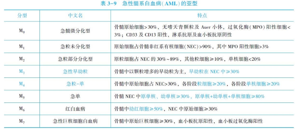 2.急性髓系白血病(AML)分为八个亚型。