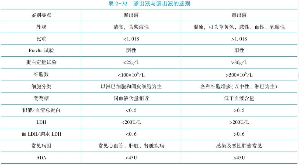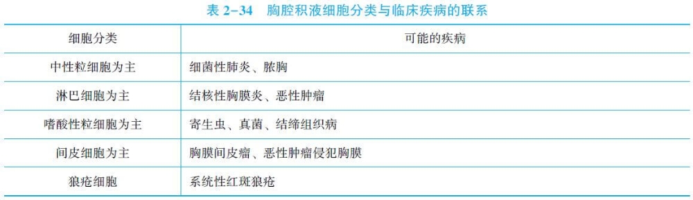 (2)确定胸腔积液性质:诊断性胸腔穿刺抽出液通过常规检测,可确定积液是渗出液还是漏出液。