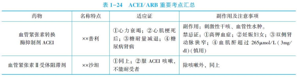 5.血管紧张素Ⅱ受体阻滞剂(ARB) 降压作用主要通过阻滞组织的血管紧张素Ⅱ受体亚型AT1,更充分有效地阻断血管紧张素Ⅱ的水钠潴留、血管收缩与组织重构作用。不引起刺激性干咳。ARB在治疗对象和禁忌证方面与ACEI相同。