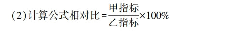 (1)概念:两个有联系的指标之比,常用倍数或百分数表示。