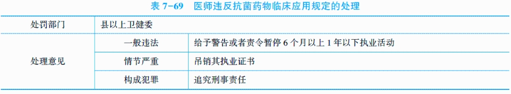 2.对抗菌药物超常处方医师的处理 抗菌药超常处方3次以上且无正当理由的医师提出警告,限制其特殊使用和限制使用级抗菌药处方权。