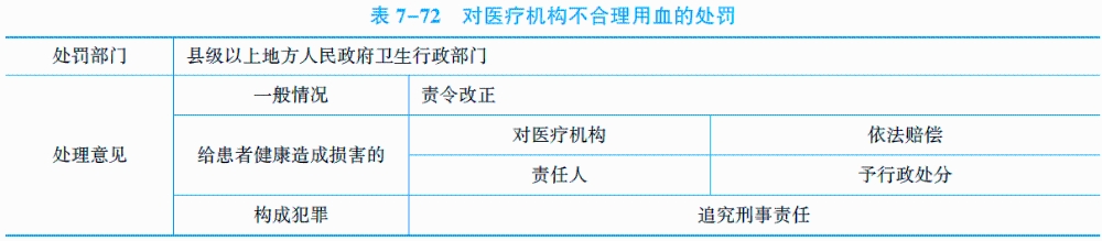 2.医务人员的法律责任 医务人员违反规定,将不符合国家规定标准的血液用于患者的,由县级以上地方人民政府卫生行政部门责令改正;给患者健康造成损害的,应当依据国家有关法律法规进行处理,并对负有责任的主管人员和其他直接责任人员依法给予处分。