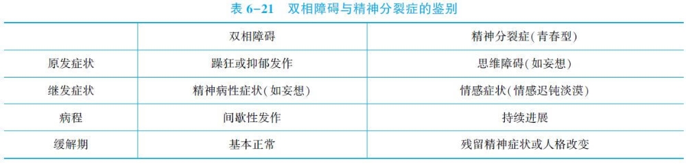 2.双相障碍的诊断 主要是依据临床表现特点进行的,当患者在临床病程中先后出现过躁狂发作和抑郁发作,且排除其他躯体、脑器质性精神障碍、精神活性物质所致精神障碍等可以诊断。