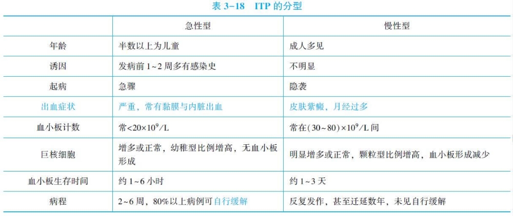1.急性型 发病前1~2周多有感染史,临床出血表现重,除有皮肤、黏膜出血外,还有内脏出血。