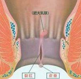 ②前哨痔:裂口下端皮肤因炎症、水肿及静脉、淋巴回流受阻,形成袋状皮垂向下突出于肛门外