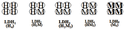 (2)举例:乳酸脱氢酶(LDH1~LDH5共5种同工酶)心以LDH1为主;肾以LDH2为主;肺以LDH3和LDH2为主;肝和骨骼肌以LDH5为主。