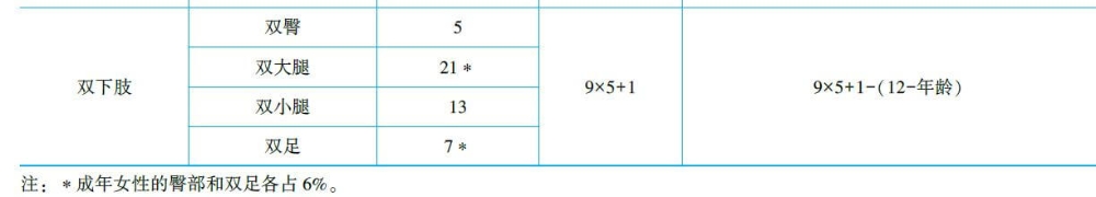 注:*成年女性的臀部和双足各占6%。