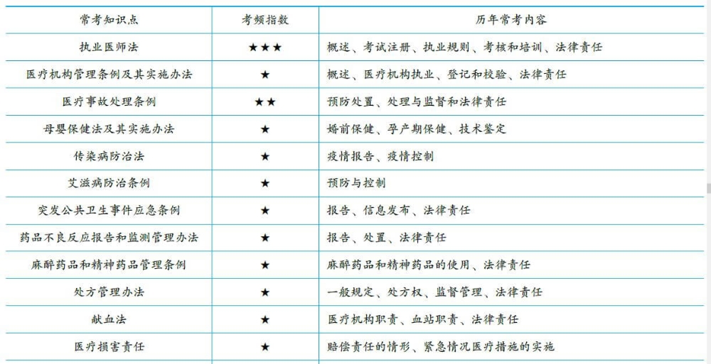 卫生法规每年都有出题,在近几年医师的考试中越来越受到重视,题目难度不断加大,如果对内容熟悉,基本属于好拿分的科目。