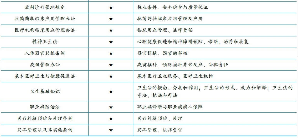 卫生法规尤其要重视,概念性的表述,如医师法的内容、医师管理条例、药品管理法等。多看、多听、多记、多做题加深印象。