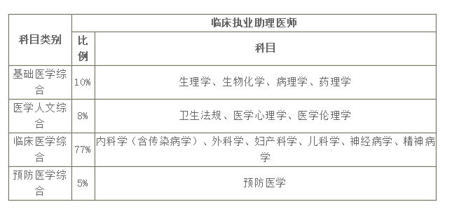 医师资格考试医学综合笔试测试内容、考试形式以原卫生部医师资格考试委员会审定颁布的《医师资格考试大纲》为依据。临床执业助理医师医学综合笔试考试方案及内容见下表: