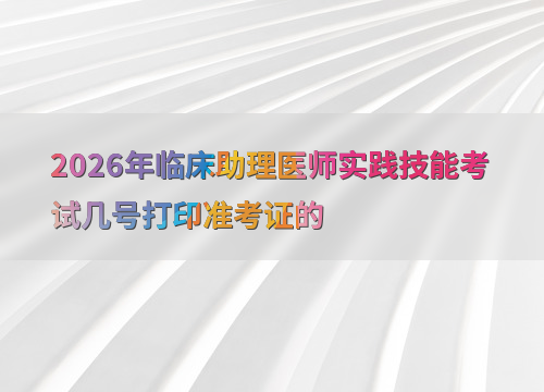 2026年临床助理医师实践技能考试时间为6月6日至17日,准考证打印时间因地区而异,通常在考前1-2周开放。