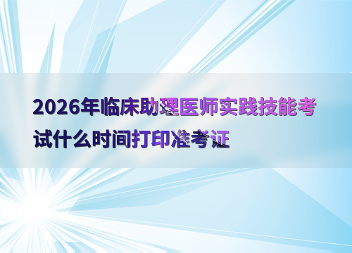 2026年临床助理医师实践技能考试时间为6月6日至17日,准考证打印时间因地区而异,通常在考前1-2周开放。