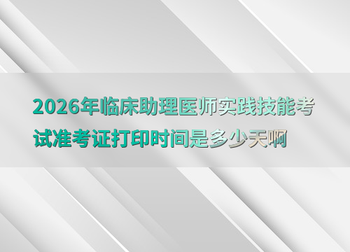 2026年临床助理医师实践技能考试时间为6月6日至17日,准考证打印时间因地区而异,通常在考前1-2周开放。