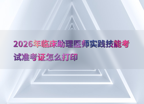 2026年临床助理医师实践技能考试时间为6月6日至17日,准考证打印时间因地区而异,一般在考前1-2周开放。