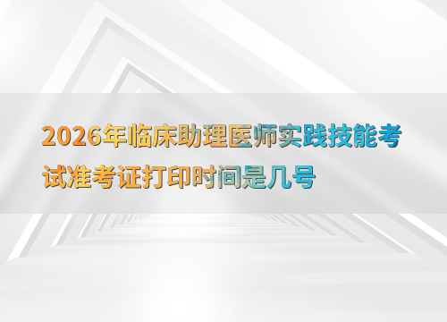 2026年临床助理医师实践技能考试时间为6月6日至17日,准考证打印时间因地区而异,通常在考前1-2周开放打印。