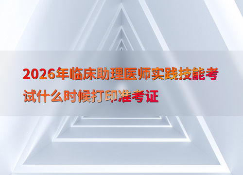 2026年临床助理医师实践技能考试时间为6月6日至17日,准考证打印时间因地区而异,一般在考前1-2周开放打印。