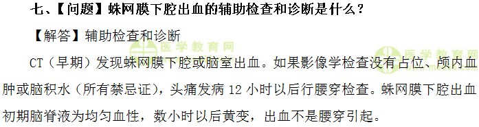 七、【问题】蛛网膜下腔出血的辅助检查和诊断是什么?