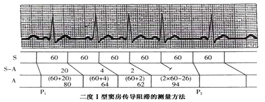 1)莫氏(Mobitz)Ⅰ型即文氏(Wenckebach)阻滞,表现为PP间期进行性缩短,直至出现一次长PP间期,该长PP间期短于基本PP间期的两倍。