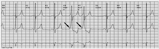 2.心电图表现:典型预激表现为窦性搏动的PR间期<0.12秒,某些导联的QRS波时限>0.12秒,QRS波起始部粗钝(称delta波),ST段有继发改变,T波与主波相反。