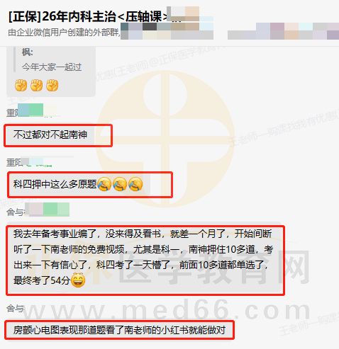 考场上的惊喜,来自南苑老师的精准预判!2026 内科主治考试刚结束,群里就被学员的好评刷爆,大家都在喊:“不愧是南神,押题真的太准了!”