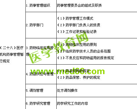 4.医疗机构的药剂管理 | (1)配备药学技术人员的规定 | |||