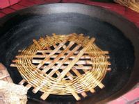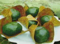 制作方法:(1) 打面。先将粘米浸泡一至三小时,再把糯米合进去同泡一会,滤干水,打成面( 以前无电机时用碓舂) 。面打好后,一般应立即使用,否则,应将其摊干,以勉发酸。(2) 拆煮白蒿打芡 妥 面。野自蒿应鲜摘鲜用,拆洗净后,和水煮熟,挤干,用碓舂烂,然后与少量米面一起在锅里打芡。若使用绵菜,则更方便,因绵菜一般只在清明时节扬花后采摘来晒干,以备一年之甩。届时,只须将其舂成沫状打芡则可。打芡时,须掌握整个米面的量,若芡打得太多,粑会变甜,打得太少,粑的绵韧性就差些。打好芡,就合在米面中 绥 揉成粑团。(3) 制馅。馅一般分成甜二种。成馅用腊肉( 鲜肉也可) 、豆腐干( 均煮熟切成小颗) 、蒜苗( 切碎) ,再加少量腌制大头菜,炒熟后备用;甜馅一般用黑芝麻,炒香舂烂加糖即可。原料备齐,包馅上甑蒸熟即可食用。湘西自治州农民喜欢用桐树叶子包好蒿菜粑再蒸. 蒿菜粑韧绵糯滑,有一股浓郁的野蒿香,且益气健肺,和缓脾胃。但在以前,它却是好吃难春,尤其到了年关,有碓的人家常常排起长队,劳力弱的往往得全家出动,辛苦一天也许才春得完十斤米。现在打米面容易了,做起来也就不难,每逢家人过生,无论老少,都要做一点,松桃人谓之“春一下”,其受欢迎的程度,即使在今日的城镇,也往往是超过洋味十足的生日蛋糕的。
