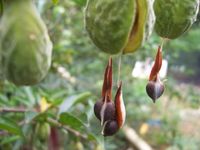 1。白木香 常绿乔木,幼枝有疏柔毛。叶互生,革质,有光泽,卵形、倒卵形或椭圆形,先端短渐尖。伞形花序顶生或腋生,花黄绿色,芳香,花萼浅钟状,裂片5,两面均有短柔毛;花瓣10,鳞片状,有毛;雄蕊10,一轮;雌蕊子房上位,2室。蒴果木质,倒卵形,长2.5--3 厘米;种子基部有长约2 厘米的尾状附属物。花期3--4月份,果期5--6月份。生于平地、丘陵的疏林或荒山中,有少量栽培。分布于福建、广东省、海南、广西省。