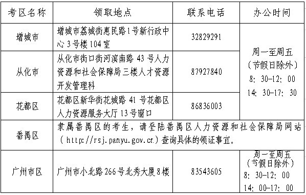 注:在广东省人事考试局网站报名的考生,请与广东省人事考试局联系领取(地址:广州市天河路13号润粤大厦四楼)。