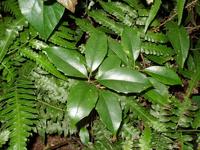深棕色物。种皮内层石细胞呈多角形、类圆形或不规则形,直径约至83μm,壁稍厚,纹孔较大。果皮表皮细胞表面观类多角形,垂周壁略呈连珠状增厚,表面有角质线纹;表皮中散有油细胞。中果皮细胞皱缩,含暗棕色物,并含淀粉粒。