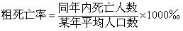粗死亡率,简称死亡率,一定时期内(通常是一年)全部死亡人数与同期内该地区的平均人口总数之比,一般用千分比表示。它表示该地区该时期人口的死亡强度。粗死亡率是人口度量中最基本的指标之一,它具有计算简便、所需资料易得等优点,能比较准确地反映死亡对人口总量增长的影响,是计算人口自然增长率的重要组成部分。