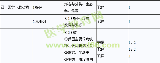 | 二、医学蠕虫 | 1.线虫 | (1)线虫概述 形态、生活史 | 了解 | 1 |