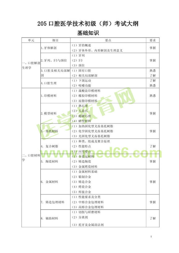 2013年口腔医学技术初级师考试大纲基础知识与从业行为规范
