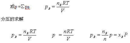 分压:在相同温度下,组分气体B占有与混合气体相同体积时所产生的压力,叫做组分气体B的分压。