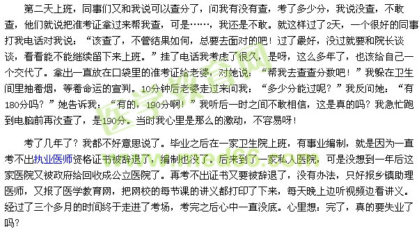 功夫不负有心人,终于……终于……终于通过了。虽然只是乡镇助理医师,但在乡镇卫生院有了这本证书就有执业处方权了,工作也保住了,在此谢谢网校的全体老师,谢谢你们。