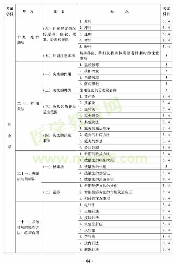 2012年全科医学(中医类)全科医学中医主治医师考试大纲——针灸学