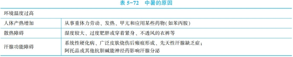 炎热季节常为中暑的发病诱因。致病的主要原因:对高温环境的适应能力不足。在大气温度升高(>32℃)、湿度较大(>60%)和无风的环境中,长时间工作或强体力劳动,又无充分防暑降温措施时,缺乏对高热环境适应者极易发生中暑