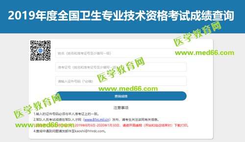 1.2019年度全国卫生专业技术资格考试成绩查询时间为7月26日-10月30日。请各位考生避开高峰期(查分前3天)进行查询。