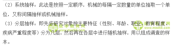 (1)单纯随机抽样:是最基本的抽样方法,也是其他抽样方法的基础。即先将被研究的对象编号,再用随机数字表或抽签、摸球、计算机抽取等进行抽样。此法只能用于样本数目不大的 情况。