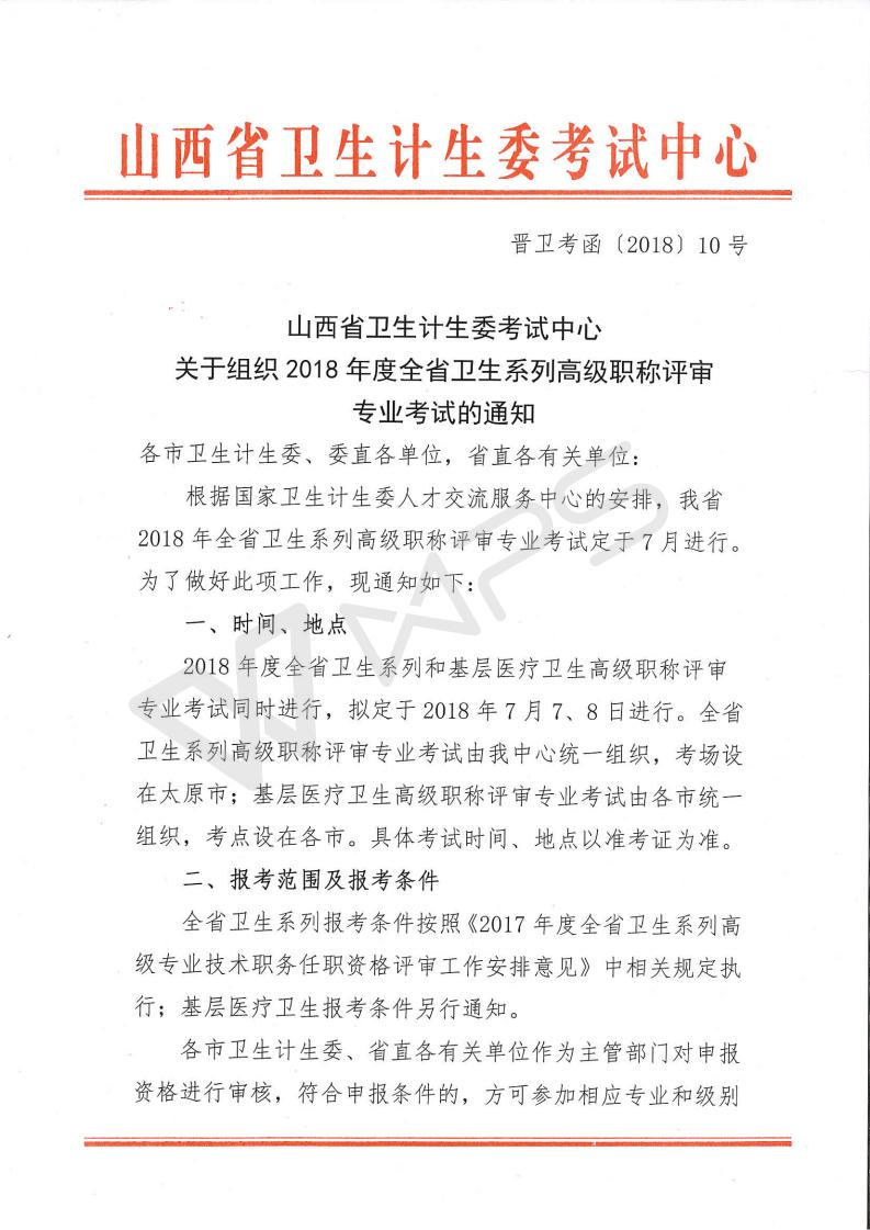 2018年度全省卫生系列高级职称评审专业考试的通知现已公布,医学教育网小编为大家编辑整理了,2018年山西省卫生系列高级职称评审专业考试通知的相关内容,希望对大家有所帮助。