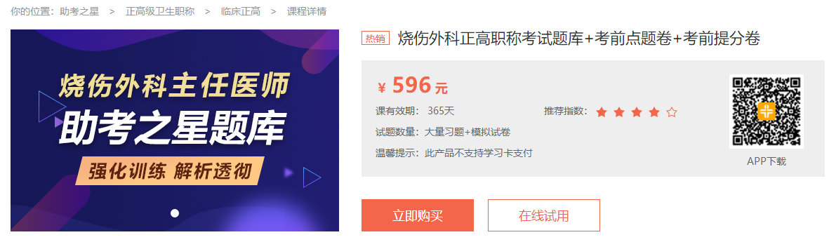 2020年烧伤外科高级职称考试题库哪里有?相信很多考生朋友都很关注,医学教育网小编整理烧伤外科高级职称考试题库+考前金题卷+考前模考卷下载地址,希望对您有帮助!