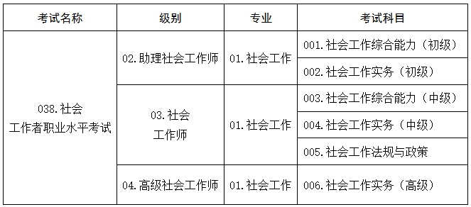4.社会工作者职业水平考试代码及名称表