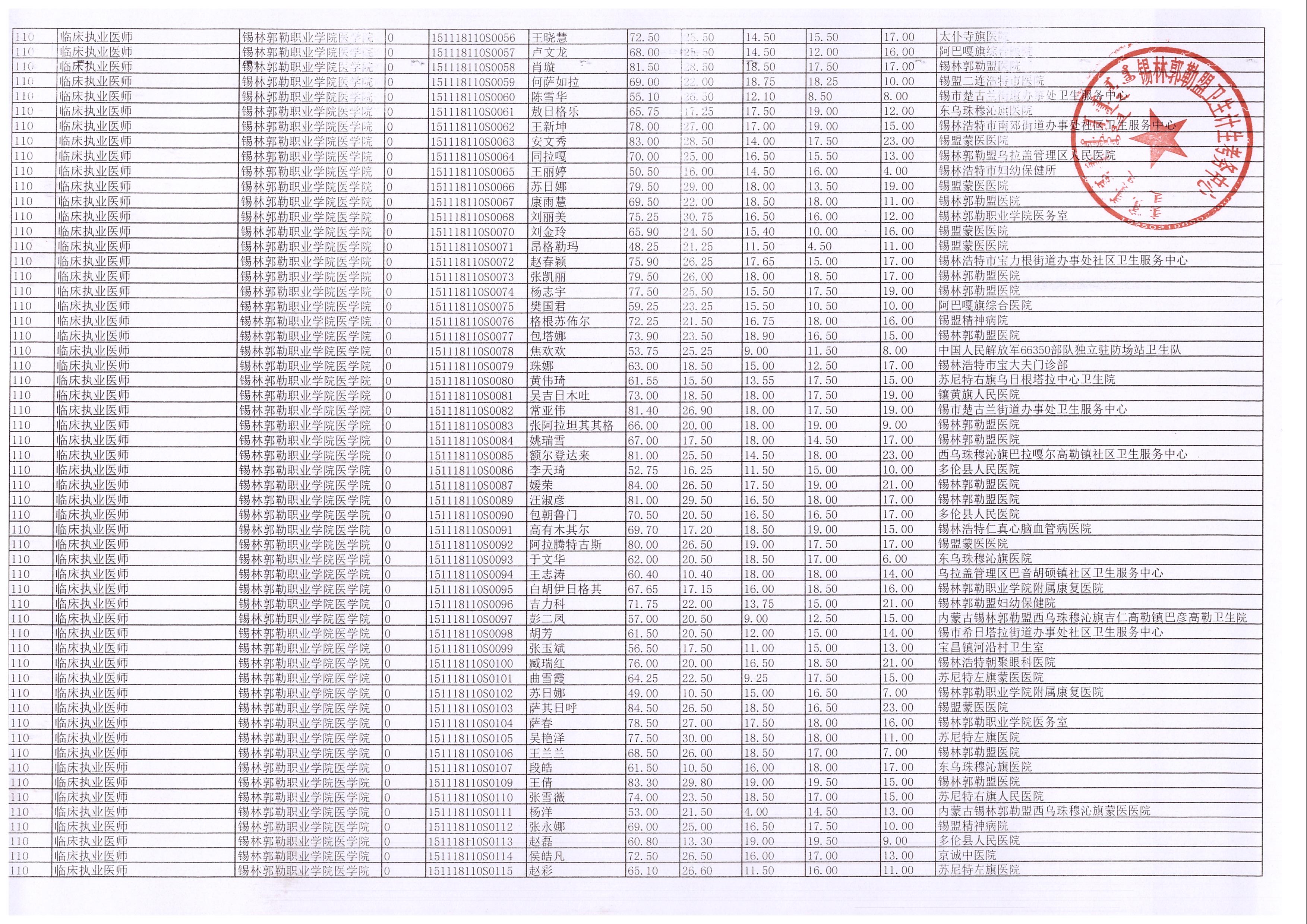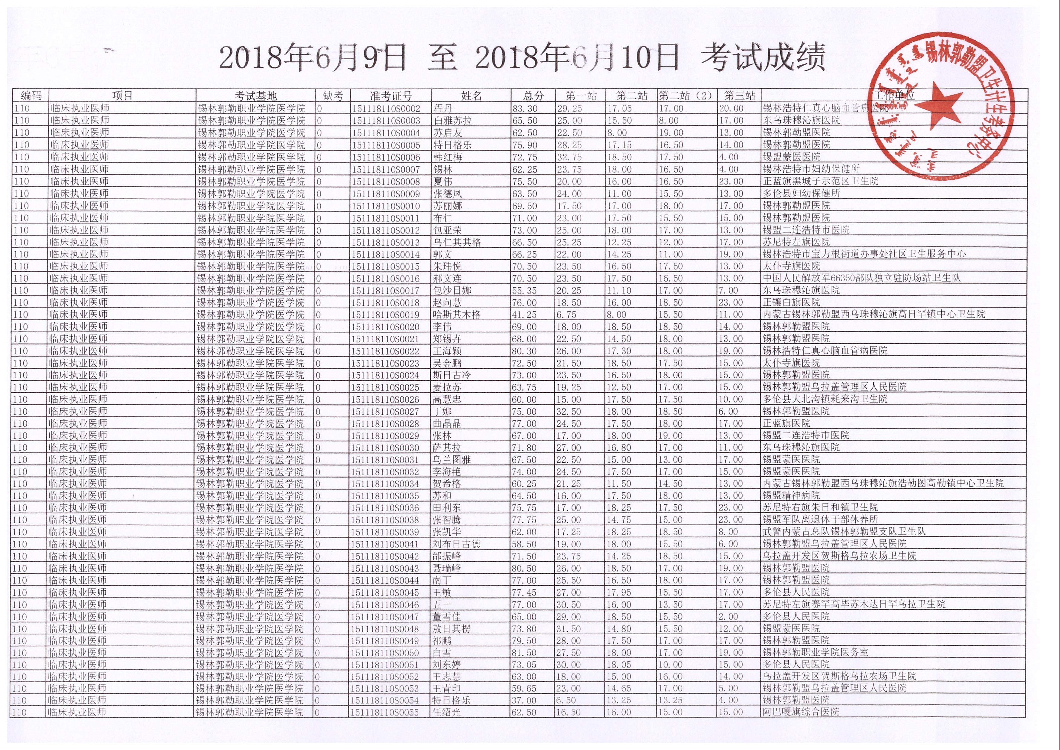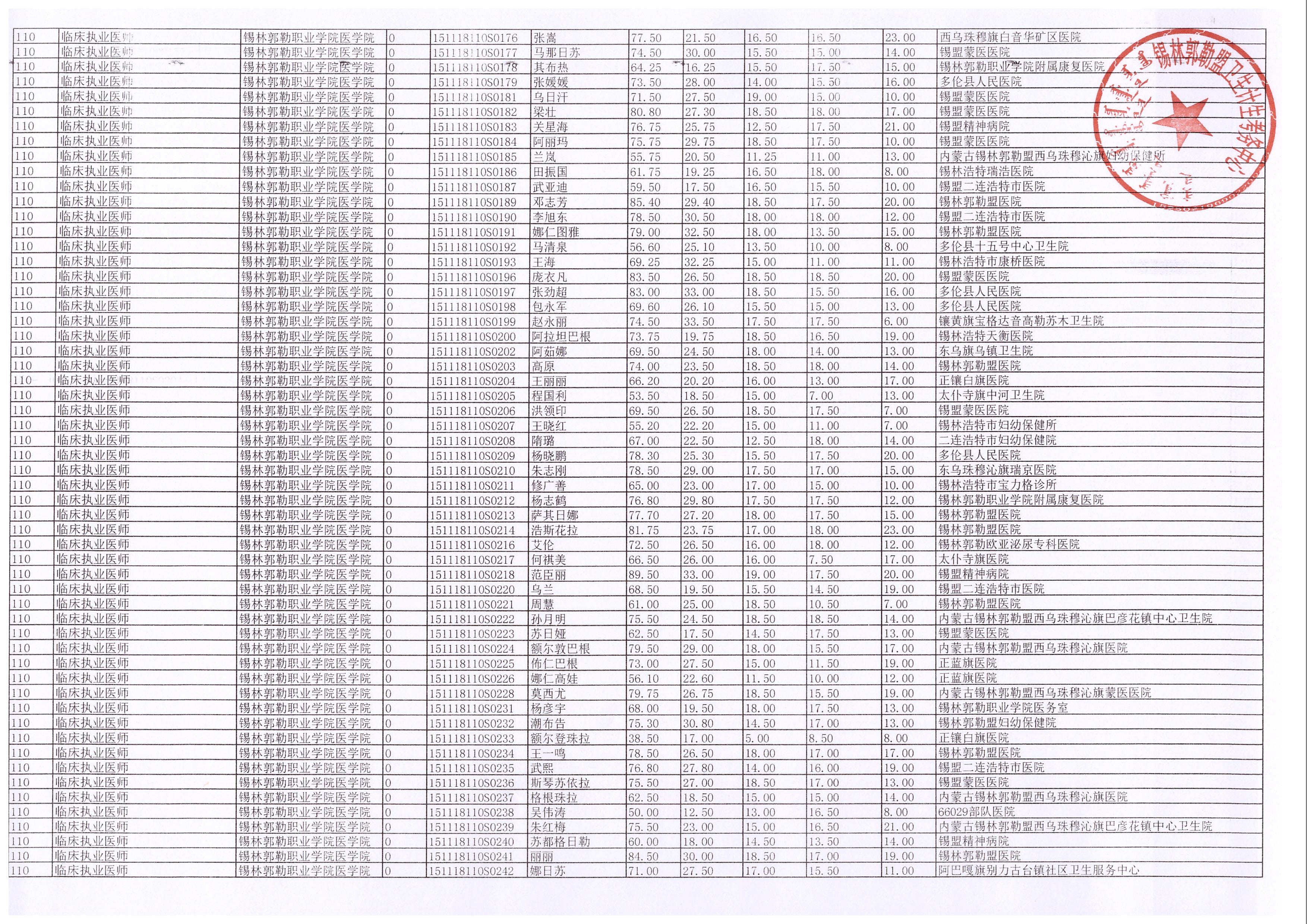 - · 2022内蒙古锡林郭勒医师资格实践技能考试成绩公示单