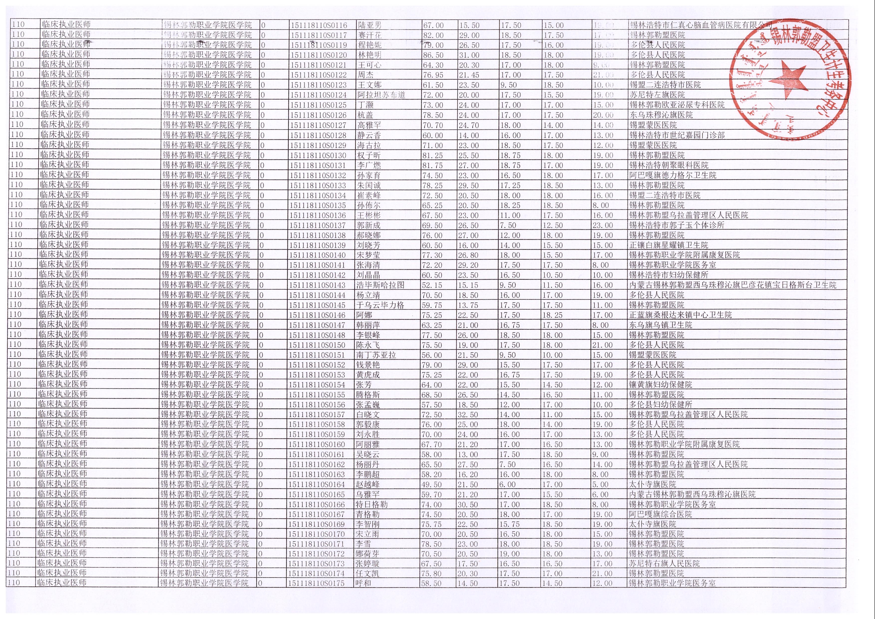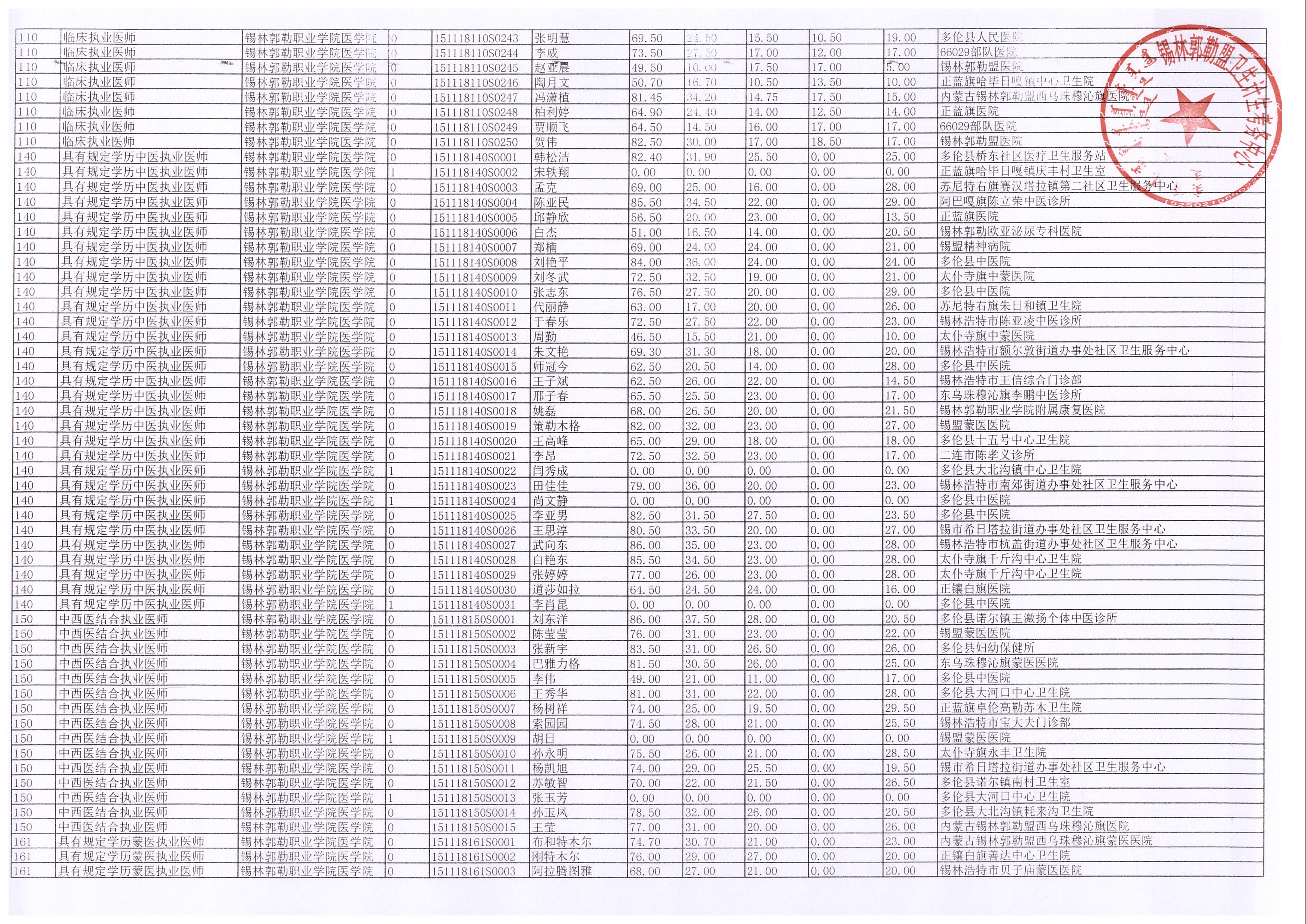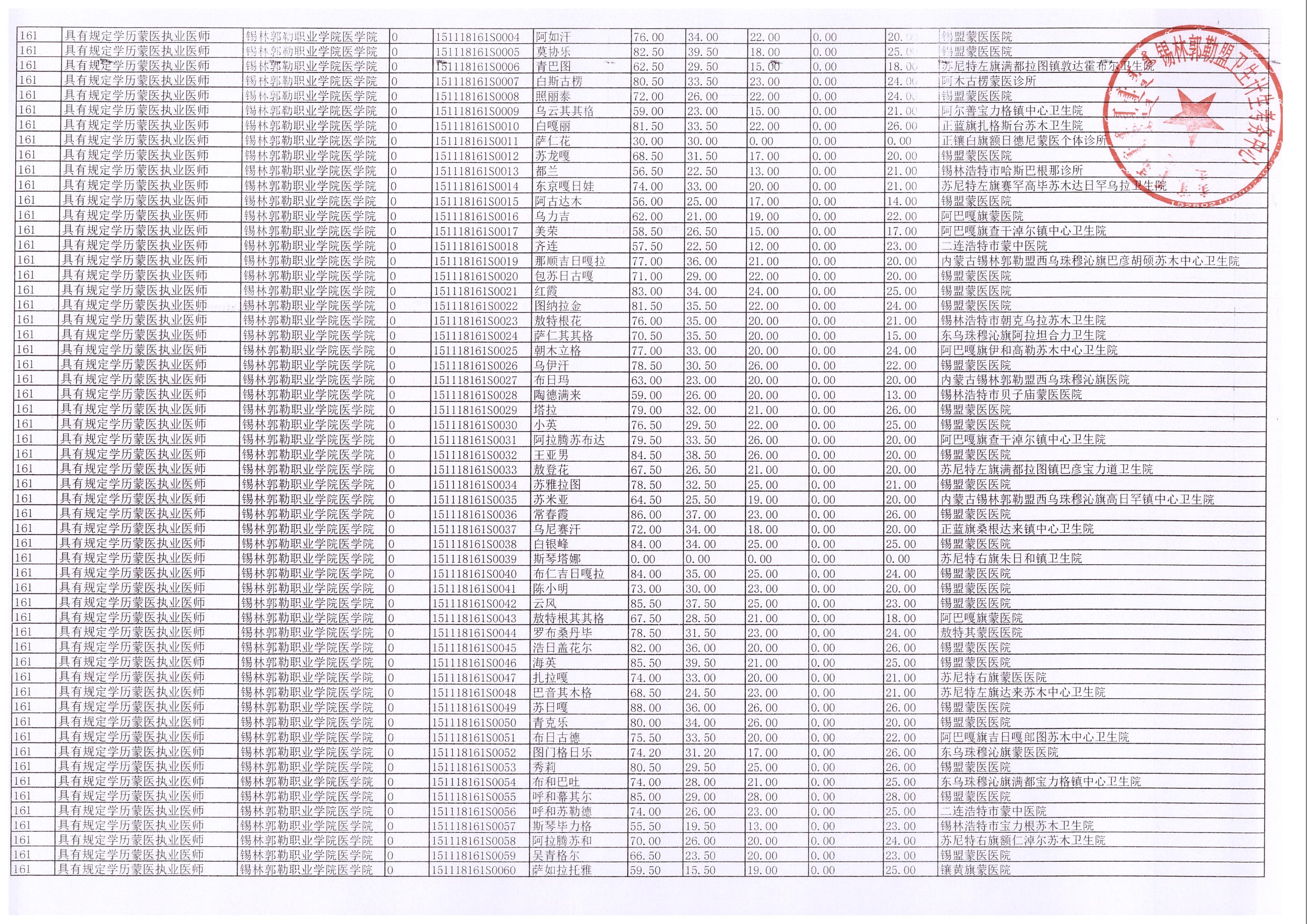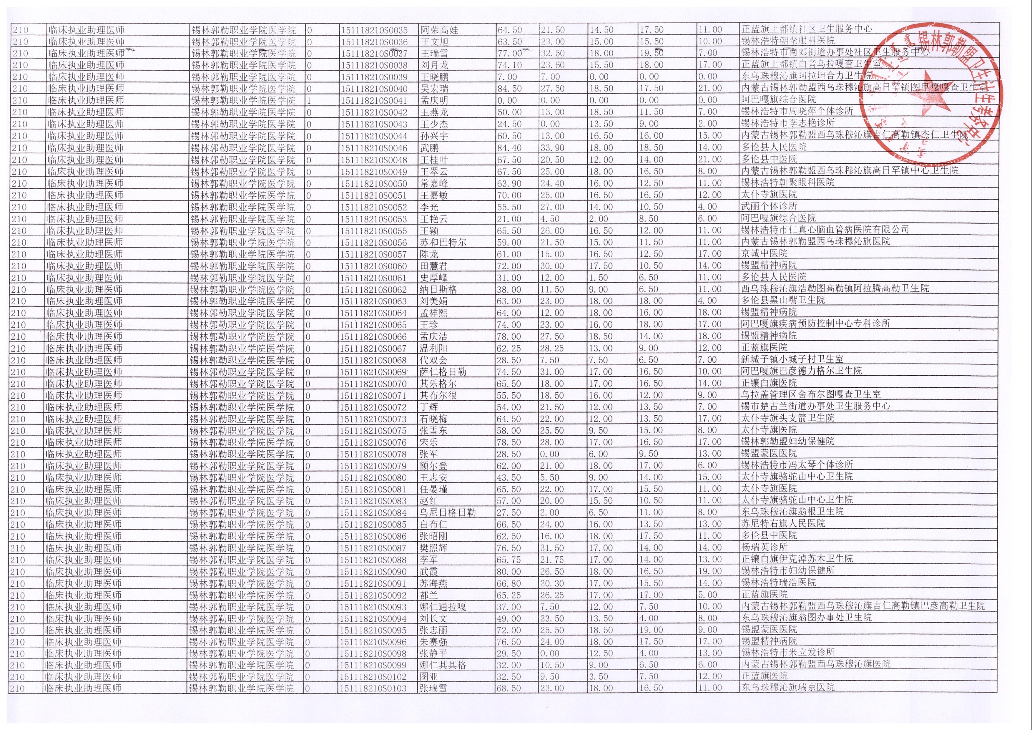 - · 2022内蒙古锡林郭勒医师资格实践技能考试成绩公示单