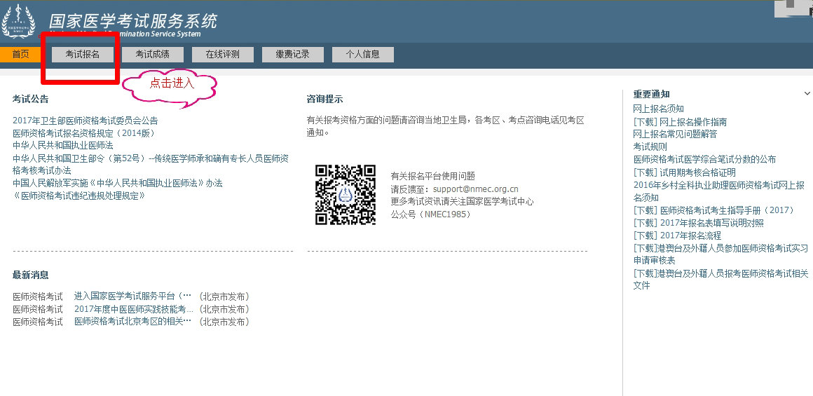步骤一:打开国家医学考试网网站,点右侧的网上报名。