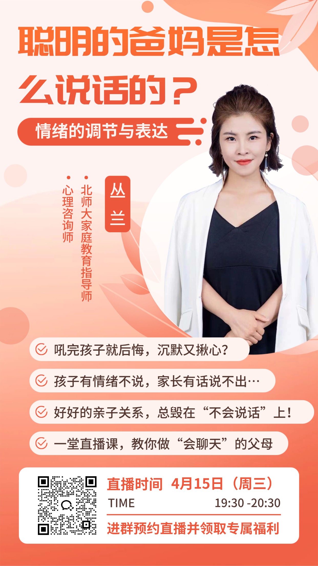 4月15日19:30直播间,北师大家庭教育指导专家丛兰带你拆解: