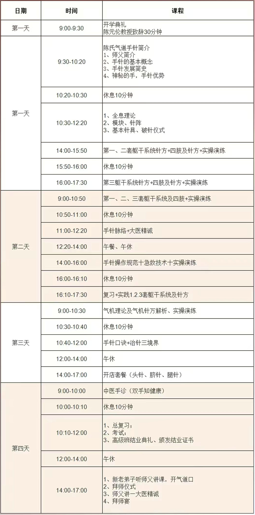 陈氏气道手针实战取证班,4天线下课+200讲线上课。课程涵盖手诊手针体针全科,常能快速缓解多种常见不适。送《陈氏气道手针》书+图谱。三次复训仅需500元场地费,全国数十家医院已推广使用。