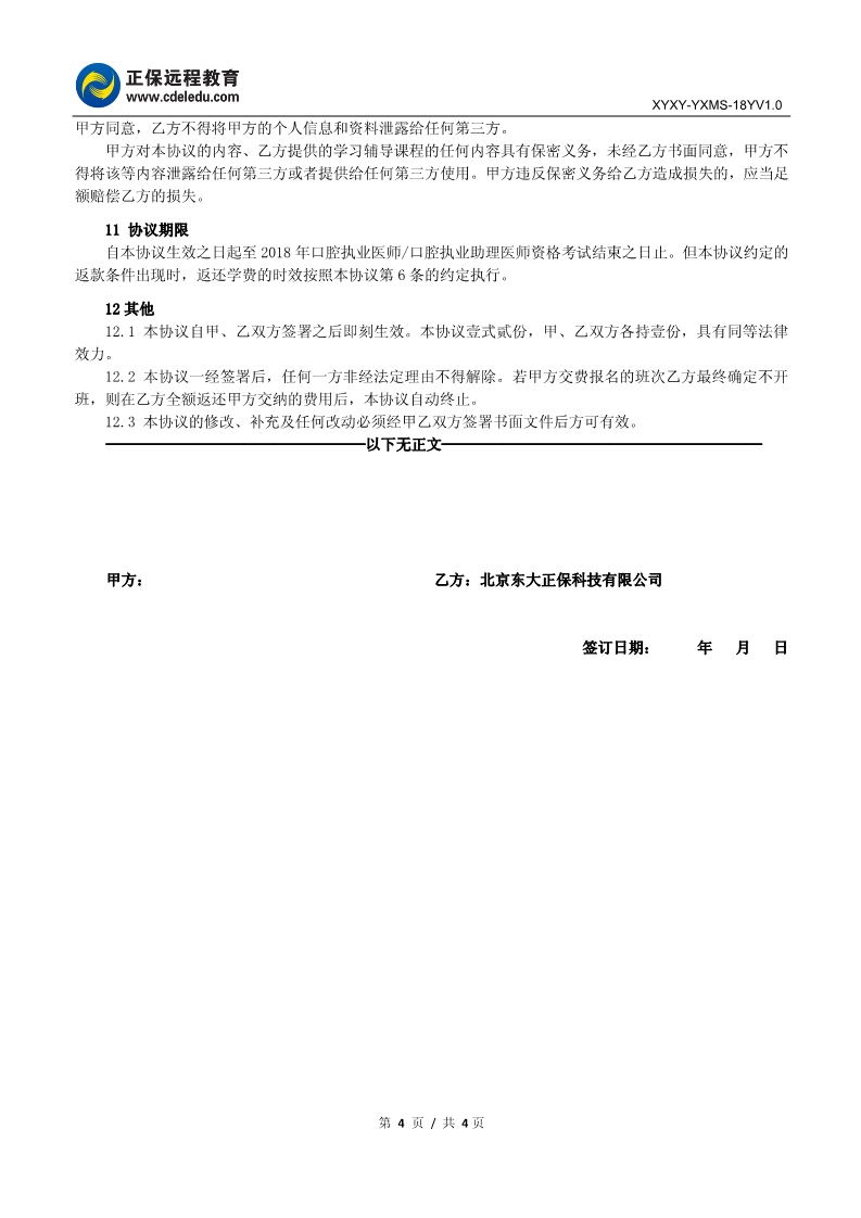 2018年口腔医师面授全封闭旗舰班学员协议书