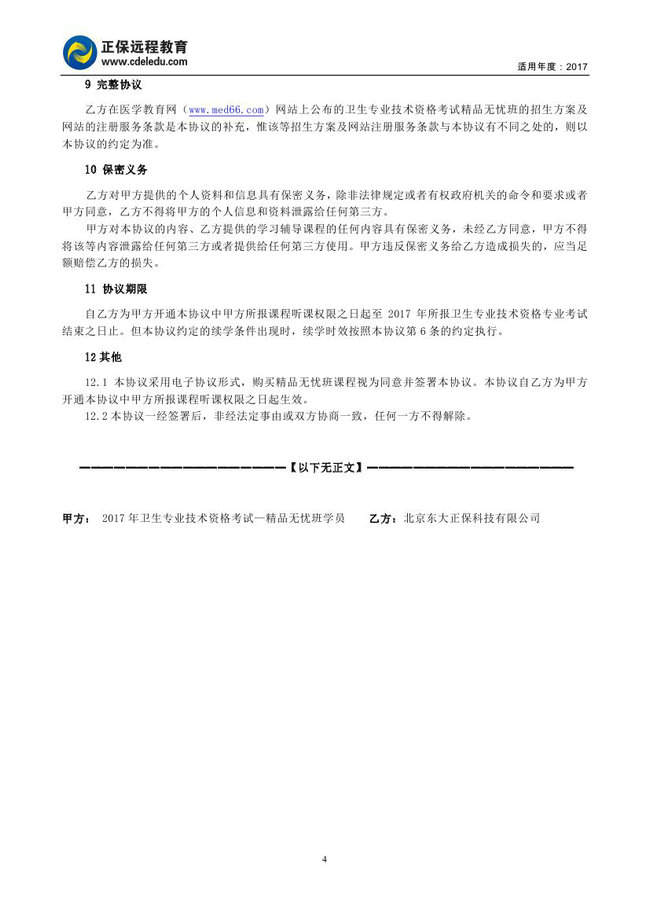 初级护师“精品无忧班”协议书