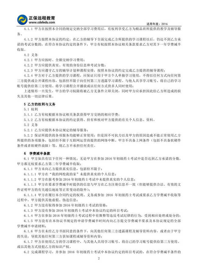 初级药士考试“精品班”协议书