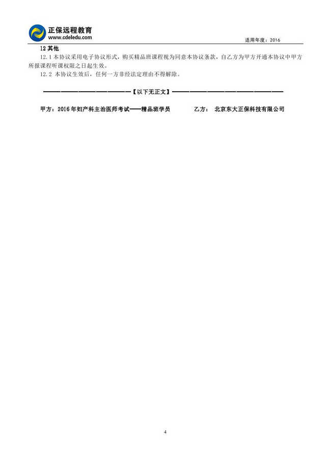 妇产科主治医师考试“精品班”协议书